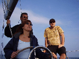 Auf dem Campingplatz "Wulfener Hals" beobachtete ich die Surfer und Segler bei ihrem schoenen Hobby. Dabei sagte ich mir "das waere auch was fuer mich". Kurz darauf meldete ich mich zu einem Segelkurs auf einem Katamaran an. Das Segeln gefiel mir so gut dass ich dabei blieb. |